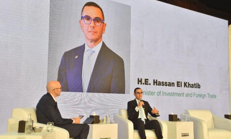 شارك المهندس حسن الخطيب، وزير الاستثمار والتجارة الخارجية، في  منتدي ” انتربرايز مصر ٢٠٢٥  ” تهيئة مستقبل الأعمال المصرية” في جلسة نقاشية حول تقييم نتائج ال١٢ شهرا الماضية، وذلك بحضور نخبة من المسؤولين والخبراء وممثلي مجتمع الأعمال.