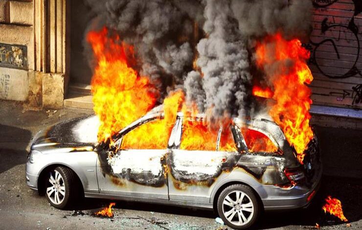 اشتعال سيارة يعطل حركة المرور بالجيزة