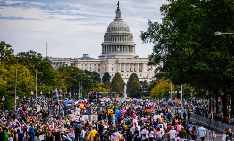 ونقلت مراسلة CNBC عربية رلى الطراونة عبر فيديوهات أجواء التظاهرات الحاشدة من العاصمة الأميركية واشنطن.