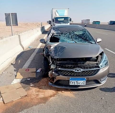 تصادم سيارة ونقل ثقيل بسبب بقعة زيت بالقطامية