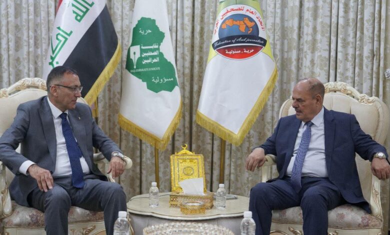رئيس اتحاد الصحفيين العرب يستقبل سفير دولة فلسطين لمناسبة انتهاء عمله في العراق