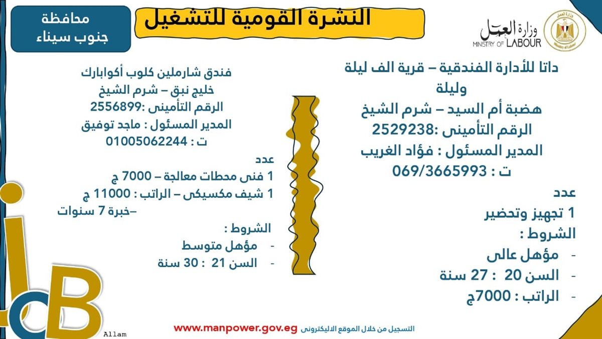 أوضحت الوزارة في بيانها أن الفرص المتاحة تغطي نطاقًا جغرافيًا واسعًا، يشمل محافظات: القاهرة، المنوفية، السويس، القليوبية، الغربية، بني سويف، جنوب سيناء، سوهاج، أسيوط، بورسعيد، الإسماعيلية، الإسكندرية، البحر الأحمر، أسوان، والمنيا.
