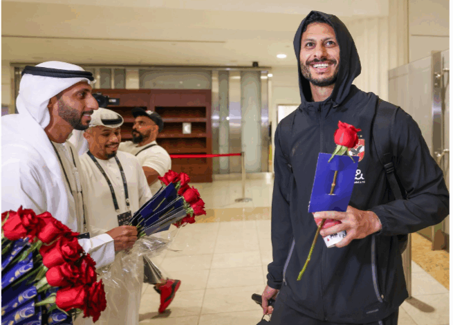 استقبال بالورود لبعثة الاهلى فى الامارات