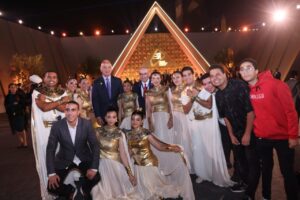 واضاف: المتحف ده، اللي بيسموه “الهرم الرابع”، بيعرض كنوز توت عنخ آمون ومركب الشمس بتاع الفرعون خوفو، بالإضافة لآثار مهمة تانية من حضارة مصر القديمة، وده مبادرة ثقافية غالية بتضوي على تاريخ البشرية كلها.