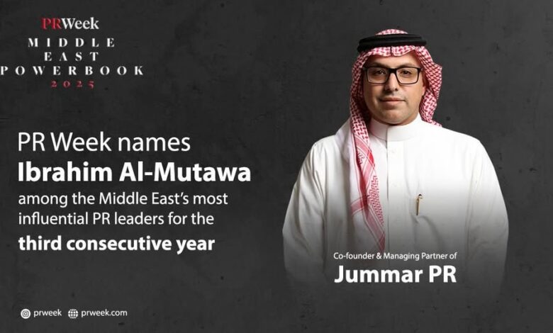 PRWeek has recognised Ibrahim Al-Mutawa, President and Co-Founder of Jummar PR & Communications, among the Middle East’s Most Influential PR and Communications Leaders for 2025. This marks the third consecutive year that PRWeek has included him in its annual list, which highlights the region’s leading professionals shaping the communications industry.