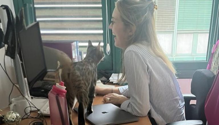 واختتمت تعليقها: “يمكن تكون قطة السفارة الجديدة نجلب لنا بعض من الحظ في يومنا العملي”.