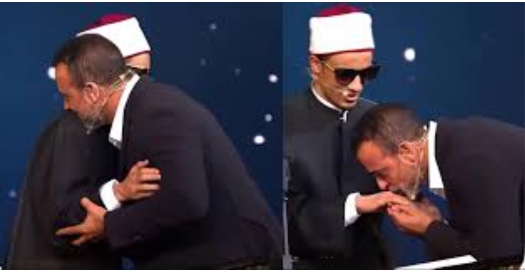 قام الداعية مصطفي حسني بتقبيل يد المتسابق محمد أحمد حسن في دولة التلاوة قائلا : ماتحرمونيش من الشرف العظيم ده ..عاوز أسلم علي مولانا.