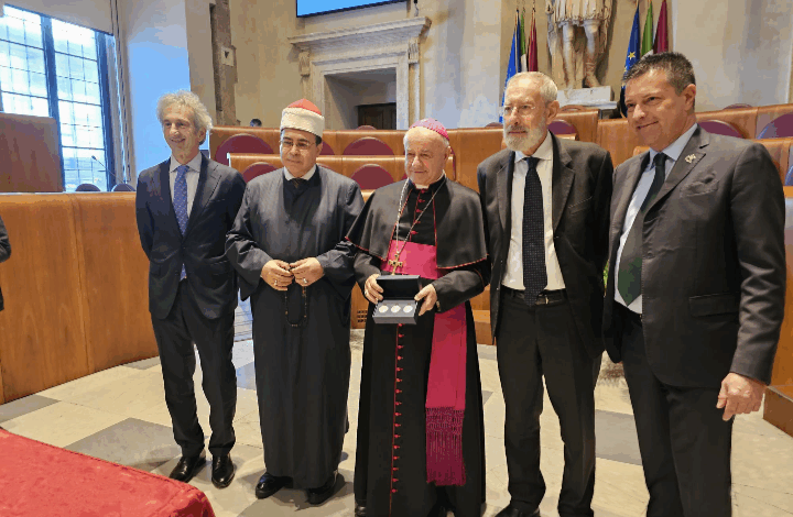 شهدت قاعة جوليو سيزاري في الكامبيدوليو في العاصمة الإيطالية روما، اليوم الأربعاء، حدثاً تاريخياً بالإعلان عن إصدار نقدي تذكاري جديد تحت عنوان: “ثلاثة أديان، مدينة واحدة: ثلاثية الأديان التوحيدية تحت سماء روما”. ويأتي هذا الإصدار الاستثنائي كرمز ثقافي ومدني قوي في زمن تتصاعد فيه الانقسامات، ليؤكد على قيم الحوار والتعايش السلمي.