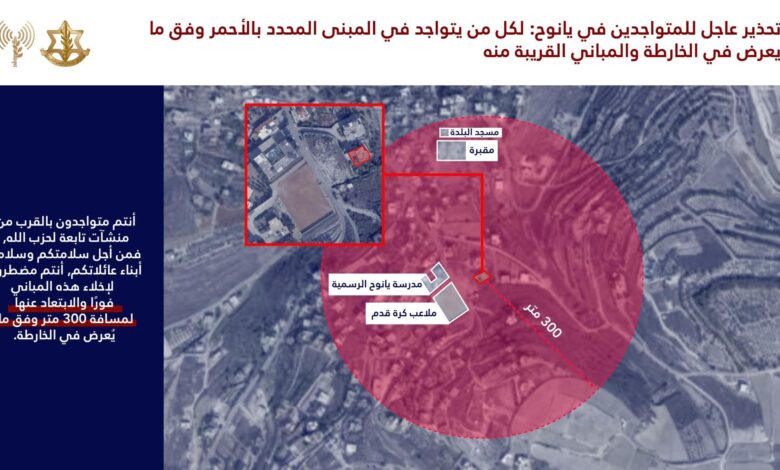 الجيش الاسرائيلي ينشر إنذار عاجل إلى سكان جنوب لبنان وتحديدًا في قرية يانوح