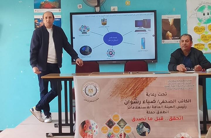 نفذ مجمع إعلام جنوب سيناء بالتعاون مع ادارة طور سيناء التعليمية ندوة إعلامية بمدرسة عمرو شكرى الاعدادية بنات بعنوان (الامن السيبرانى والحد من انتشار الشائعات).