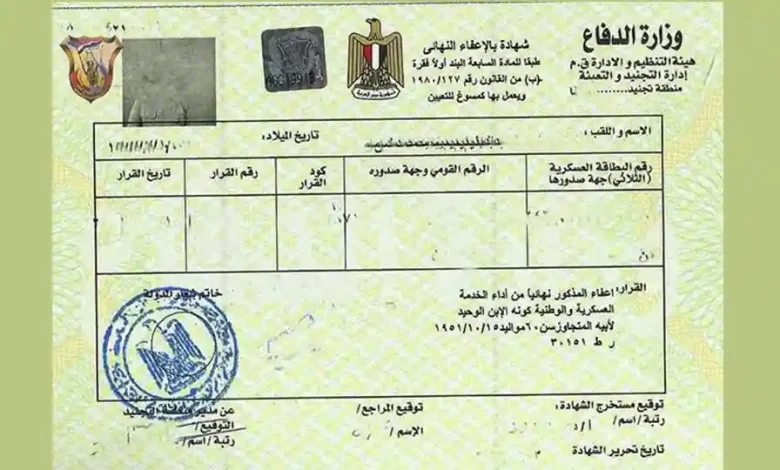 كيفيةاستخراج شهادة إعفاء من التجنيد للابن الوحيد..وحالات الإعفاء النهائي والمؤقت من التجنيد