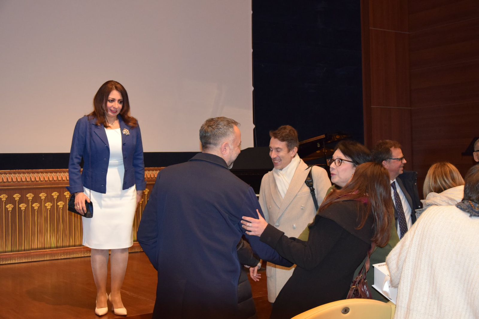 وعقب المحاضرة، قدّمت فرقة “كابيلا كوستانتينا” الموسيقية حفلًا موسيقيًا متميزًا، شارك فيه كل من باولو دي ماتييس، والسوبرانو جوليا باتريونو، وعازفة الكمان توكي تاكاهاشي.