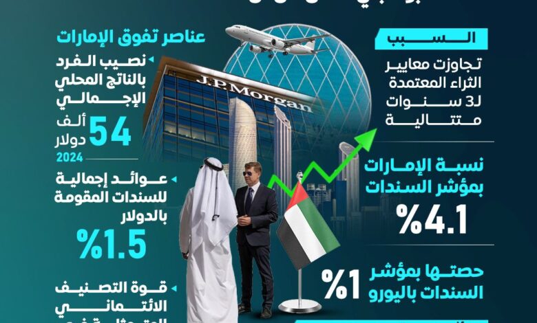 بنك JPMorgan Chase & Co يعتزم استبعاد دولة الإمارات العربية المتحدة من مؤشرات سندات الأسواق الناشئة