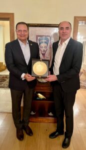 وفي إطار الزيارة التي قام بها الدكتور أحمد طه إلى مدينة دبلن، استقبله السفير محمد ثروت سليم، سفير جمهورية مصر العربية لدى أيرلندا، حيث رحب بهذه الزيارة التي تعكس الح