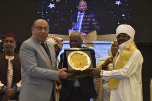 وبالنيابة عن معالى رئيس اتحاد التلفزة الافريقي ، قام الدكتور سعيد زينهم باهداء درع الاتحاد لمعالى الجنرال عبد الكريم شرف الدين محمد . والقي كلمة اشاد فيها بشخصية الفريق عبد الكريم شرف الدين الذى شرف تشاد والفارة الافريقية جمعاء بهذا التكريم .