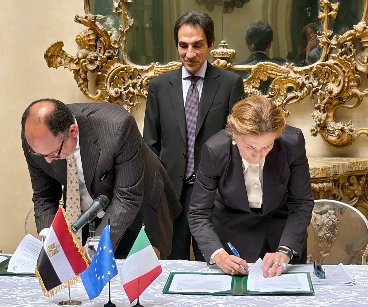 علي – كلية الهندسة، الأستاذ/ هشام محمود زريف بدر – كلية الهندسة، الدكتورة/ رؤى إبراهيم محمد مبارك – كلية الهندسة، الدكتور / أحمد حسن حسين – كلية الهندسة، والطالب / عمر أحمد رشاد محمود، ومن الجانب الإيطالي، الأستاذة/ ماريا أماتا جاريتو – رئيسة الجامعة، الأستاذ/ كليمنتي تشيزارانو- مدير قسم الرياضيات ومنسق برنامج الدكتوراه في الهندسة، الدكتور/ نيكولا بارلوتي – مدير الشئون الدولية، الدكتور إلبيدو رومانو – نائب عميد كلية الهندسة، الأستاذ داريو أسانتي- نائب رئيس الجامعة لشئون البحث العلمي ، الأستاذ/ فيديريكو أكورو – كلية الهنسة، والأستاذ/ إيمانويل بريينتسا- كلية التراث الثقافي.