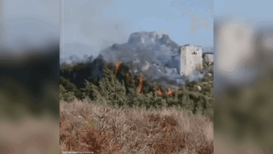 السيطرة على حريق قلعة صلاح الدين الأيوبي بريف اللاذقية بعد جهود استمرت أكثر من 6 ساعات